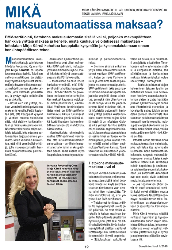 Maksuautomaattien kokonaisratkaisuja valmistavan Infodata Processing Oy:n yrittäjällä Mirja Kärnällä on tapana kyseenalaistaa kaikki. Tekniikan suhteen maallikkona hän pistääkin yrityksen nippeliniilot selittä-mään ja havainnollistamaan asiat mahdollisimman yksinkertaisesti, jotta varmasti ymmärtää ne, ja pystyy myös selittämään ne asiakkaille.